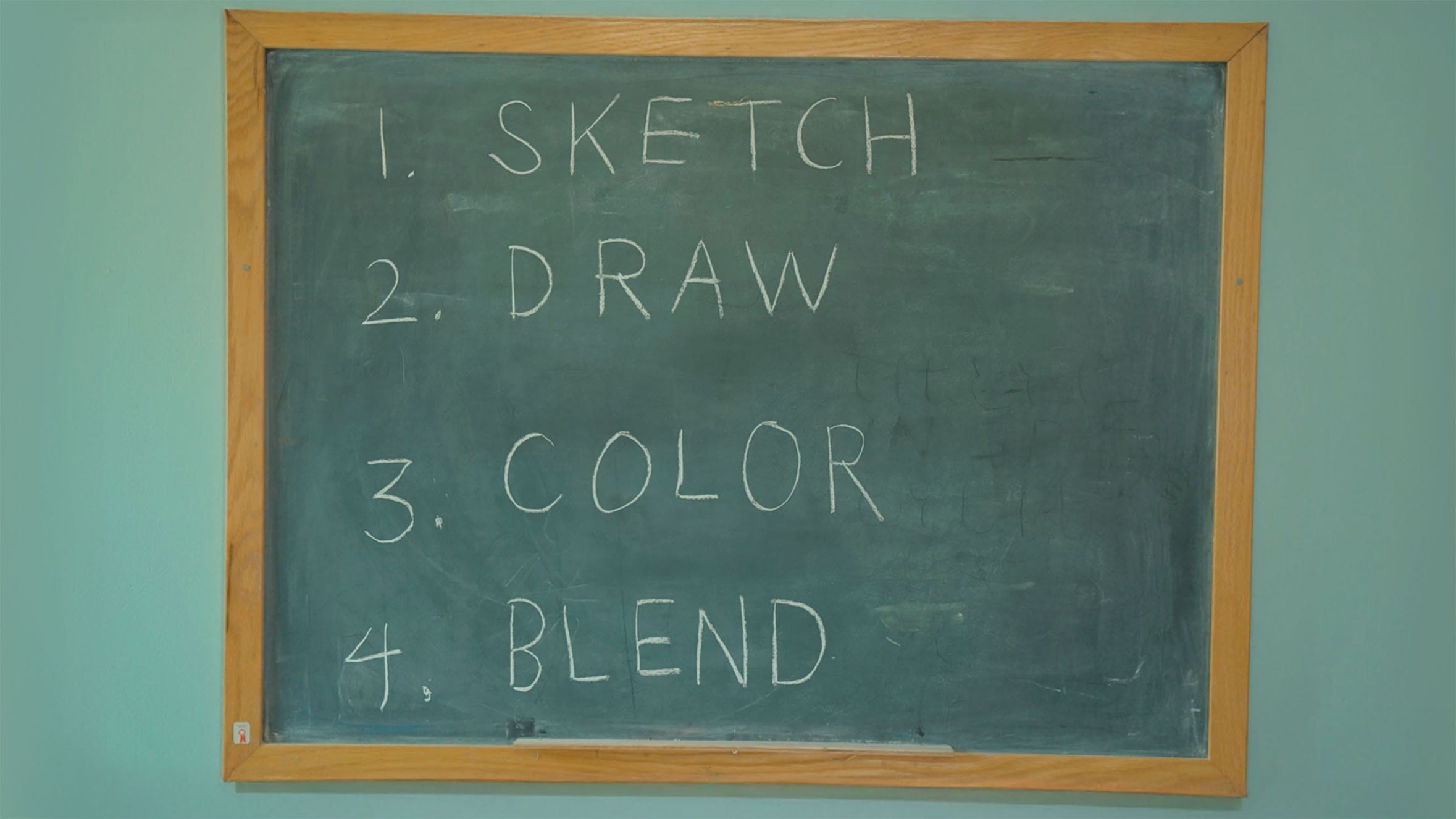 To fill out the remainder of a 45 or hour-long period, have your kids follow my prompt to draw something (other than a bee?) using the techniques we just practiced. You might copy these steps onto your board to remind them what we were just doing: